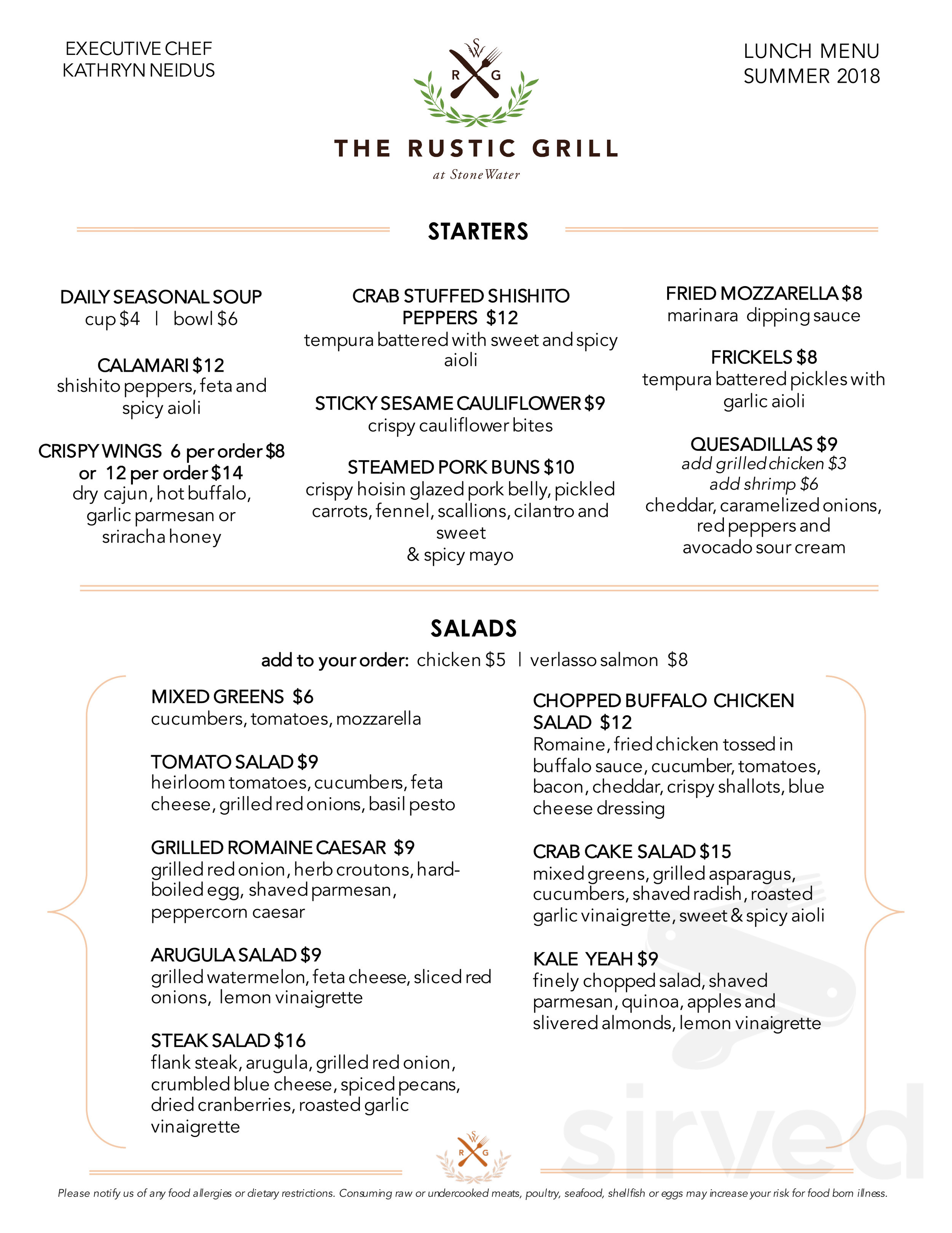 The Rustic Grill At Stonewater Menu In Cleveland Ohio Usa
